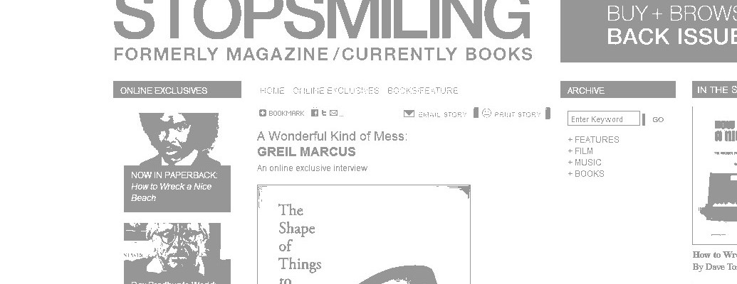 A Wonderful Kind of Mess: An online exclusive interview with Greil Marcus at Stop Smiling, December 9, 2006