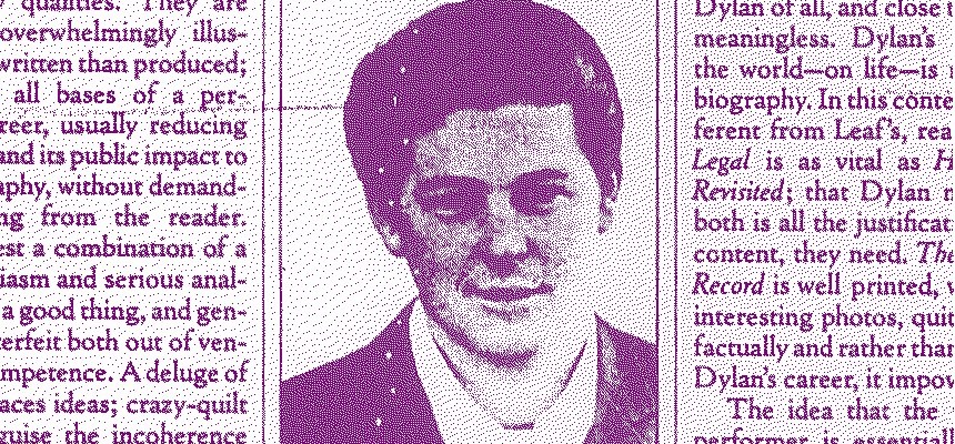 Rinzler tries to write like a man obsessed with Dylan, but the effect is always forced; he tries to be “official,” never to really criticize, and so the result is bland. His writing is alternately inflated and tired, the rhythm of a man who knows he has nothing new to say: the only connecting line is change, which by now is the oldest line on Dylan of all, and close to the most meaningless. Dylan’s assault on the world–on life–is reduced to biography. In this context–no different from Leaf’s, really–Street-Legal is as vital as Highway 61 Revisited; that Dylan made them both is all the justification, all the content, they need. The Illustrated Record is well printed, with lots of interesting photos, quite accurate factually and rather than enriching Dylan’s career, it impoverishes it.