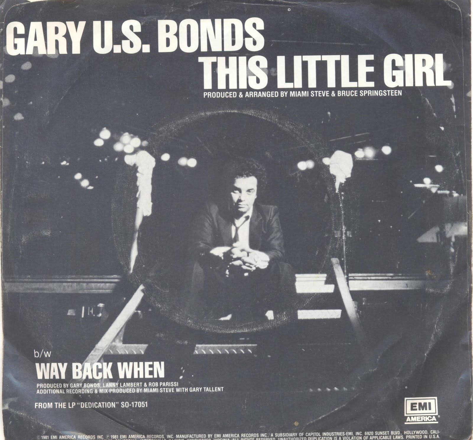 Off the charts for nearly twenty years, Gary U.S. Bonds is back with a hit album, Dedication, and a hit single, “This Little Girl”–both thanks to production and songwriting aid from Bruce Springsteen and Steve Van Zandt of the E Street Band, who have long used Bonds’s epochal “Quarter to Three” as their untoppable encore. Bonds began singing in his hometown of Norfolk, Virginia, in 1558, with a high school group called the Turks; at 42, his voice sounds little different than it did in the hit-making days of the early 1960s. The free-swinging, unfakable enthusiasm is still there; what’s new is an edge of experience, of worry and compassion, that can transform rock into soul.