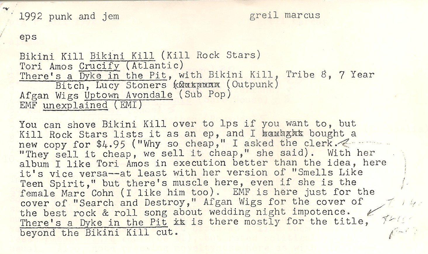 July 29, 2014 by GM Admin 1992 punk and jem (eps) 1992 Pazz & Jop EPs ballot submitted to the Village Voice Share this: Click to share on X (Opens in new window) X Click to share on Facebook (Opens in new window) Facebook Click to share on Tumblr (Opens in new window) Tumblr Like Loading...