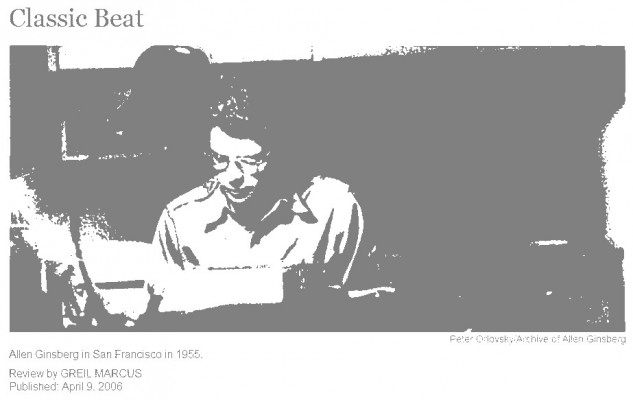 As it happens, it’s with the critical pieces that Ginsberg’s poem comes back to life—critical pieces that take the shape of real talk. With David Gates there’s an instant change in tone. “I drove to the store the other day”—and you realize he’s not going to tell you he discovered “Howl” there. He parks, hears the boom of an obscene rap song from the S.U.V. in the next spot and starts thinking: “Banned literary mandarins such as Joyce and Nabokov may simply have wanted to go about their hermetic work unmolested, but Ginsberg was a public poet and a provocateur. ‘Howl,’ for all its affirmations, is a profoundly oppositional poem, and it counts on being opposed… It’s a radically offensive poem, or used to be—offensive even to received notions of what poetry is, and it needs offended readers whose fear and outrage bring it most fully to life.”