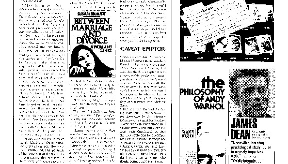 I am less impressed with the inspirational/new-woman aspects of this book than are the people quoted on the dust jacket; the story is too sharply told to fit a neat, ideologically proper purpose. And it would be unfortunate if Between Marriage and Divorce were treated simply as a woman’s book. As a soap opera that exploded, it takes you around its turns faster than you could have expected to go, and at its best crosses up whatever expectations you might bring to it.