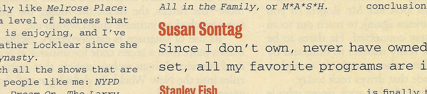 Esquire, June 1996 (part of round-robin feature, “My Favorite TV Show”)