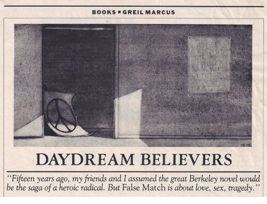 That a person would be willing to recognize and pursue an obsession based on an overheard phone call would, in a Manhattan novel, be a measure of the character’s romanticism—if not an entree into a cheesy S&M thriller. In False Match, which is a Berkeley novel, it is a measure of loneliness. Harold Raab lives with three other people on the south side of the city, just off Telegraph Avenue near the Park & Shop supermarket. His roommates are Shaw, a former activist with an unfinished Ph.D. thesis in the closet; Jimmy, a would-be scriptwriter; and Donna, younger than the men, who works at a nightclub. They are friends—both more and less than friends, because they live in Berkeley after the fact, after the time in which history was made in the town, when the people who lived there felt they were part of something larger than themselves.