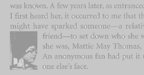 Along with “Dangerous Blues,” “Big Mac from Macamere,” and “No Mo’ Freedom,” Mattie May Thomas’s “Workhouse Blues” appeared in 2005 on American Primitive II—Pre-War Revenants, a collection of 1920s and ’30s recordings by performers about whom almost nothing was known. A few years later, as entranced by Thomas as I’d been when I first heard her, it occurred to me that the general release of her songs might have sparked someone—a relative, a neighbor, a friend of a friend—to set down who she was. I googled her—and there she was, Mattie May Thomas, with her own MySpace page. An anonymous fan had put it up: her four songs and someone else’s face.The fan turned out to be the Greek techno artist who records as Biomass, who later posted videos of his reworkings of Thomas’s music. Each takes a Thomas performance and cuts it up, loops it, shuffles words and phrases, repeats them in stuttering echo, adds clicks and hum and whine, and sets it against footage of conflict: a tank speeding through the Iraqi desert; heavily armed police driving back Italian protesters; what might be film from the Vietnam War. Most striking is a piece that opens with split-second flashes of people running separated by much longer segments of black screen. As it goes on, the moments of action imperceptibly lengthen, until you begin to realize you’re watching the riots in Paris during May 1968. The glimpses of people and streets accumulate, building a tension to the point of explosion, all to Thomas as if she’s looking back on the event, not forward to it, not on some other plane of being, her voice carrying “No mo’ freedom” as students throw stones, rush forward, burn cars, are beaten, and even when as a comment on the ameliorating powers of modern capitalism they are replaced by three black women in a nightclub, dressed in furry bikinis and doing the limbo—one of the women giving Thomas the face she now bears. As I write, you page down to Thomas’s 134 MySpace friends, including Nina Simone, Pablo Neruda, Miles Davis, Patti Smith, Sun Ra, Jack Kerouac, Alicia Keys, Janis Joplin, Suicide, James Brown, and Guy Debord, whose 1973 film La Societe du Spectacle is the clear inspiration for Biomass’s “No Mo’ Freedom” video. It’s something to contemplate: What if these people, almost all of them dead, really had heard Mattie May Thomas? What if those living still haven’t? How lucky they are to have that ahead of them.