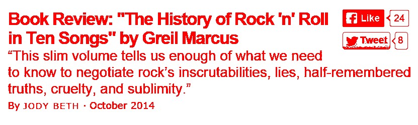 The History of Rock ‘n’ Roll in Ten Songs reviewed by Jody Beth, Tiny Mix Tapes, October 2014