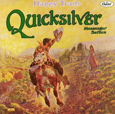 On the cover of what is presumably Quicksilver’s last album is a delightful picture that might remind one of the old Frederic Remington paintings of the Wild West; the lettering is done in pure Thirties World’s Fair script; on the back are the members of the band in pen-and-ink, their cowboy portraits matching their sound; there are even little pictures of Coit Tower and the Statue of Liberty. It’s Quicksilver’s version of Buffalo Bill’s Wild West Show, on tour from sea to shining sea.