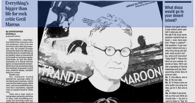 – Robert Christgau, from the Foreword to the 1996 Da Capo reprint of Stranded: Rock ‘n’ Roll for a Desert Island