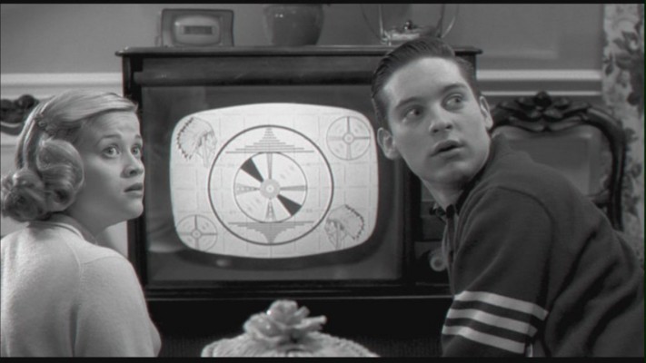When Reese Witherspoon’s slutty Jen and Tobey Maguire’s curious David, her twin brother—now “Mary Sue” and “Bud” in Pleasantville‘s George and Betty Parker family—find themselves in the pod nirvana, you’re as amused as they are to learn that here it never rains and nothing burns, that the bathrooms have no toilets and going all the way means holding hands, that all books are blank and the outside world does not exist. (An aerial view of Pleasantville shows it hidden in a sylvan valley between high mountains: James Hilton’s, or Frank Capra’s, Shangri-la.) Everyone is chirpy, white, and content. “Is that what TV in the fifties was really like?” the twenty-something in the seat next to me asked, in other words asking if this was really the self-portrait America had once presented to itself. I wasn’t sure; it seemed too weird. “Yes,” said a voice one seat over, and suddenly it wasn’t weird at all. The Great Depression and the Second World War had left a whole society shell-shocked; no one knew anymore what ordinary was, but everyone wanted to know. The diabolical experiment that was performed in the fifties, that was at once celebrated and concealed within the everyday culture of the time, was an exchange of real life for an idea of normal life.
