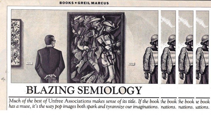 The most ambitious and the most fully realized piece in Unfree Associations does for the high culture of European modernism what “Spaghetti Western Titles” does for pop. This is “The Legacy,” which opens the book: a miniature history of culture made with politics, with goals, with intent of the most serious kind—and an account of a culture that has nowhere near the impact of a culture that could care less.