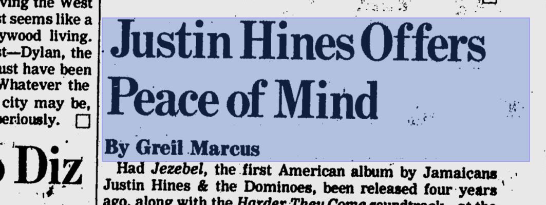 Had Jezebel, the first American album by Jamaicans Justin Hines & the Dominoes, been released four years ago, along with the Harder They Come soundtrack—at the time, pretty much the only reggae music readily available in the United States—it wouldn’t have seemed as odd as it does today, nor as self-effacing. Remember “Draw Your Brakes” by Scotty, “Johnny Too Bad” by the Slickers, “Shanty Town” by Desmond Dekker, or the sublime “Rivers of Babylon” by the Melodians? That’s the kind of music Hines and the Dominoes, who have been recording together for 12 years, make. It’s music of restraint: cool, quiet, beautifully precise singing; subtle, allusive melodies; and an unhurried and infectious beat. A clean, uncluttered band sound links the form to such basic, timeless rock-and-roll styles as Sun rockabilly, early Stax-Volt soul, and Al Green’s work with Willie Mitchell. To followers of the Maytals or the Wailers, Hines’s music may seem archaic, but it might just as likely seem remarkably fresh.