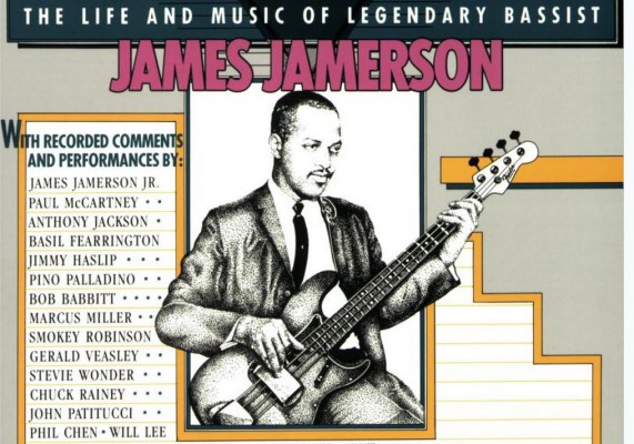 Born in 1936, Jamerson died of alcoholism in 1983. This big, spiral-bound tribute combines an illustrated biography (“I used to go out behind the house where there were all these ants on the ground, and I would take a stick and stretch a long rubber band across it and play for the ants. I would make the ants dance”), a musical analysis complete with scores, and two hour-long cassettes of raucous interviews and various bassists recreating Jamerson’s art on instrumental versions of Motown hits, with the bass on its own channel. Most effective is Phil Chen, with the intro to “Reach Out I’ll Be There”—heart-stopping, even secondhand.