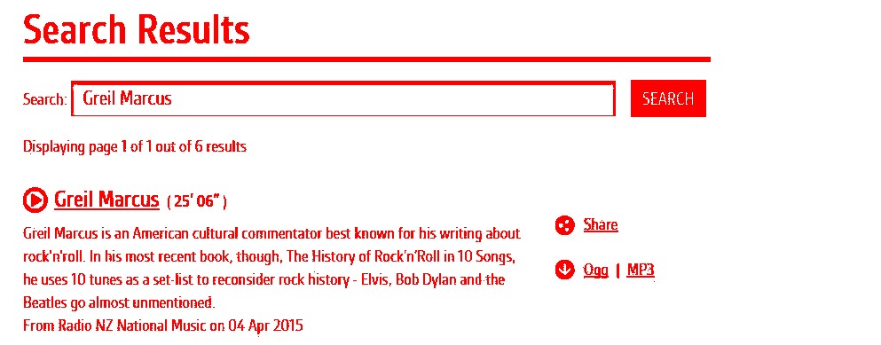 A detailed, probing discussion with Greil conducted by Chris Bourke at Radio New Zealand, re: The History of Rock ‘n’ Roll in Ten Songs. Available to stream, or as a download.