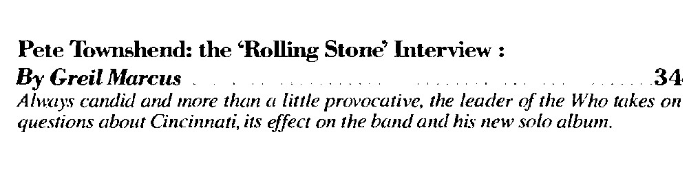 Just after Cincinnati, just after the news hit that eleven people had been killed trying to get into your show, there were statements on the radio from you and from Roger Daltrey, and my wife was very disturbed by something Roger said: simply a reference to the people who had died as “the kids.” She said, “But they weren’t all kids—one of those people was a mother with two kids of her own.” What that expression meant to her was that the audience was no longer real to the band: the audience had become faceless, physically present but also somehow invisible. Whoever was in the audience, they were “the kids.” It was as if there were an enormous gulf separating the band from its audience—as if there were no way to feel the kind of identification she and I felt when we first saw the band in 1967, when it became obvious that the band and its audience were part of the same reality a reality we were both creating, or a story we were both telling. Do you think there is that kind of gulf?