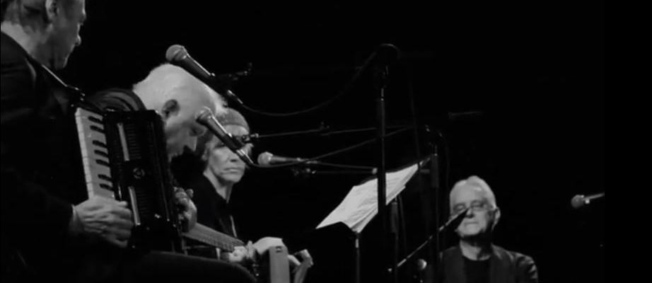 Greil on stage with (as pictured above) Rico Bell, Jon Langford, and Sally Timms of the Mekons, discussing The History of Rock ‘n’ Roll in Ten Songs while the Mekons perform versions of the book’s playlist. Later they are joined by Tomi Lumsford, great niece of Bascom Lamar Lunsford, for a version of “I Wish I Was a Mole in the Ground.”