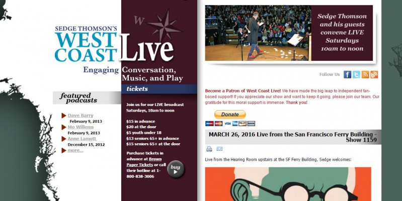 Greil Marcus will be on West Coat Live, Saturday March 26 at 11 A.M. PST on KALW-FM (and syndicated), discussing Real Life Rock: The Complete Top 10 Columns 1986-2014 and Three Songs, Three Singers, Three Nations. (Also on the bill: Wes “Scoop” Nisker, the great counter-culture newscaster from KSAN in the ’60s, whose sign off was “If you don’t like the news, go out and make some of your own.”)