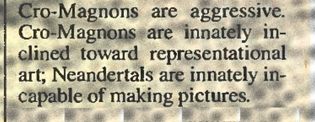 Kurtén takes full advantage of this ambiguity, using it to subvert prejudices, to demonstrate how populations that are vastly different can practice full humanity—even if neither group can fully comprehend the other. In place in Europe since perhaps 100,000 B.C., and thus adapted to cold, Kurtén’s Neandertals are white, blond and matriarchal. His Cro-Magnons, invaders from the south, are black, tall and patriarchal. Society is highly advanced (if, in Kurtén’s version, rather too casual, or insufficiently sacralized). While Neandertals are courtly and cultivate gentleness (in compensation for their fierce appearance), the smooth-featured Cro-Magnons are aggressive. Cro-Magnons are innately inclined toward representational art; Neandertals are innately incapable of making pictures. The split isn’t completely one-sided. In some ways, the Cro-Magnon world is one-dimensional compared to that of the Neandertals. The former have no real sense of the past; the latter take their identity from it.