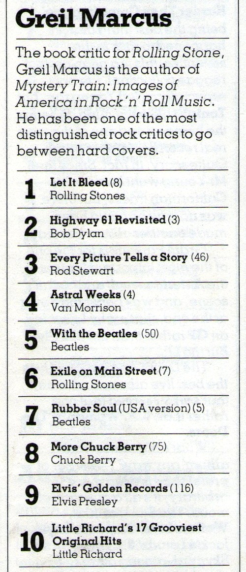 from Rock Critics Choice: The Top 200 Albums (compiled by Paul Gambaccini, 1978)