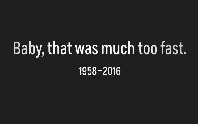 I say ad, but in fact it didn’t look like an ad, and you had to study it to find even a signpost—that little “Corvette” in the bottom right hand corner. This was an act of grace, marking a passage of one man who had made a difference, who had left the world bigger than he had found it, out of the world. It was funny, affectionate, direct, poetic, and heartbreaking. It said as much or more than all of the talk and all of the written tributes that followed Prince’s death on April 21, 2016. Maybe not more than the purple-lit bridges in Minneapolis and St. Paul, or the purple Eiffel Tower—but all were speaking the same language. We knew him.