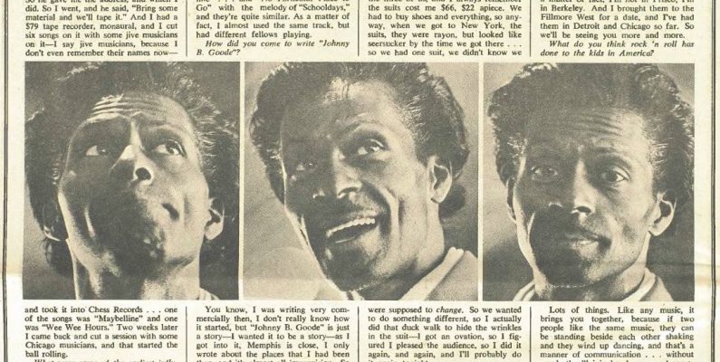 Live audience Q&A with Chuck Berry, Berkeley, June ’69, transcribed by G.M. for Rolling Stone. In its own way, Berkeley is very much a rock and roll city. The main artery leading from the university campus, Telegraph Avenue, is lined with record stores and when the release date for the new album by the Beatles … Continue reading Roll Over, Chuck Berry (06/14/69)