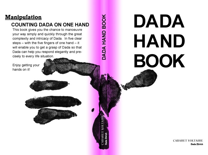 It’s too bad that, presumably for trademark reasons, the nicely sketchy, effectively instructional, and happily noisy Dada Hand Book, compiled by Adrian Notz and Yael Wicki and published by Cabaret Voltaire in 2015, can’t call itself what it is: “Dada for Beginners.” Then it could have ended with one of Dada’s best slogans: “With Dada, we are all beginners.” No one knows who said it first.