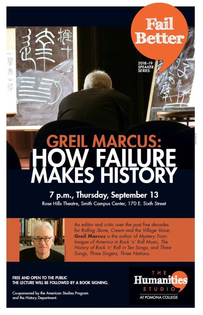 September 11, 2018 by GM Admin Reminder: Failure (Pomona College – 9/13, 7:00 PM) Click flyer for more information. Share this: Click to share on X (Opens in new window) X Click to share on Facebook (Opens in new window) Facebook Click to share on Tumblr (Opens in new window) Tumblr Like Loading... Post navigation “Dada Africa”: Museum Rietberg, Zurich, and Berlinische Galerie, Berlin (12/16) Quotable Greil: Survival Leave a comment Cancel reply Δ