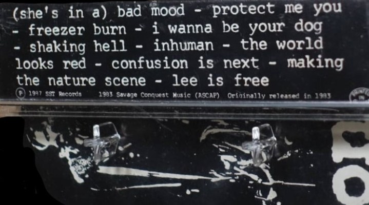 This says little more than me me me, albeit with unsettling power. But as a sort of establishing dream-shot, “Bad Mood” and “Protect Me You” set the listener up for the violent move—coming off a high, sustained white-noise tone—to Gordon’s “I Wanna Be Your Dog.” This song, originally by the Stooges, is a punk reference point—countless bands have played it—and no previous performance comes close to what Gordon does with it. We’re heaved into the middle—the recording is live—and we helplessly back away. The desperation Gordon dredges out of this paean to submission (the band, usually wonderfully evocative, is hopelessly trying to keep up with her) is terrifying: in an instant, she reverses every socially mediated idea one might have about sex, love, or social intercourse per se. This is a bomb—and its explosion turns the performance toward panic, which may be the rarest emotion one hears on a phonograph record. It is the sort of nightmare the psyche protects the dreamer from remembering the morning after, save for the flashes that distort the whole of the day. It is a found rock ’n’ roll object that seizes the finder. The shift into “Shaking Hell” at first seems like a relief: the melody is harsh, but by comparison to “I Wanna Be Your Dog” it’s Muzak. Then, once more, Gordon pulls the string. She steps slowly, deliberately, into the sort of nightmare one remembers in every detail. “I’ll take off your dress,” someone tells her, twice. “I’ll shake off your flesh.” “I’ll shake off your flesh.” “I’ll shake off your flesh—”