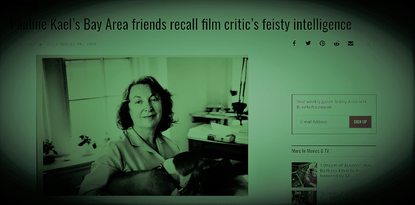 Pauline Kael’s Bay Area Friends Recall Film Critic’s Feisty Intelligence (San Francisco Chronicle‘s Datebook, Feb 10, 2020)