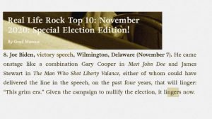 November 16, 2020 by sw - 0 comments Real Life Rock Top 10: November 2020, Special Election Edition (11/16/20)
