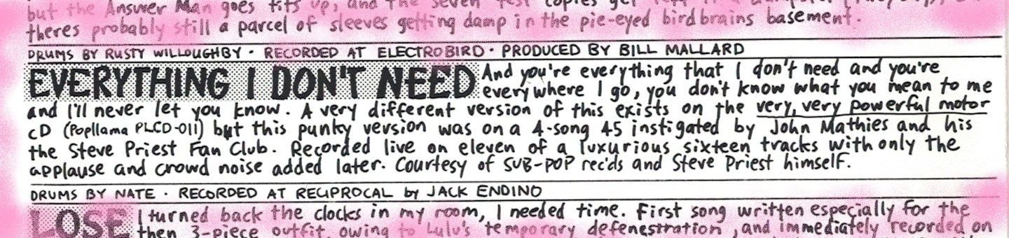 You don’t usually find the Fastbacks in features on ‘The Seattle Sound’ or ‘America’s New Liverpool.’ The Fastbacks don’t sound like anyone else in town, and they’ve been around since well before Nirvana was a gleam in the Melvins’ eyes. Twelve years and counting, for guitarist and songwriter Kurt Bloch, bassist and singer Kim Warnick, guitarist and singer Lulu Gargiulo, and various drummers, from Duff McKagan to Richard Stuverud to Rusty Willoughby—and they can still play as if the notion just occurred to them. There’s no attitude in their music, and very nearly no style—instead, a headlong, heedless impulse to communicate, to come across. Warnick’s vocals may sound flat, at first—after a tune or two what you hear is real life, real talk, lifted, dramatized, slamming the walls. That’s how music like “Everything That I Don’t Need” catches the passion, the blood, and the regret of an all-night argument—even if it’s with the mirror.