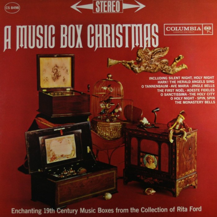 I can’t give you a rundown on notable strange blasphemous loving Christmas records. There are far too many. But after the Spector album, my favorite is a 1960s LP on Columbia called A Music Box Christmas. Everyone loves it.